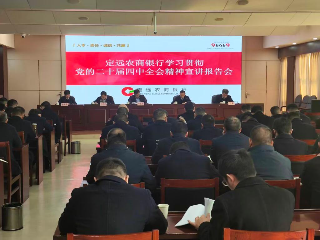 12月3日,bwin中国官网召开党的二十届四中全会精神专题宣讲报告会,党委书记毕来明作宣讲,总行党委班子成员、中层正副职及总部全体人员共100余人参会。